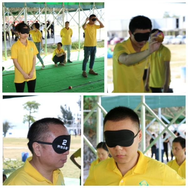 第三项——决战沙场,是整个团队游戏的升华,蒙眼的士兵要在不能说话的侦察兵和背对战场的司令员的联合统一指挥下,绕过“地雷”,捡起“炸弹”,将对方的士兵淘汰,考验信息传达准确和统一指挥的重要性,团队中只有信任和服从上级,听从指挥,才能保证政令统一,行动一致,使团队协作发挥最大的效用。
